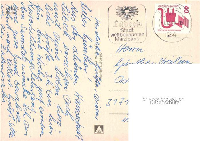 72814389 alte Postkarte LueBECK CITY Rathaus postalisch gelaufen Erhaltung siehe scans [WerneD78] KatCode: 11110001003000