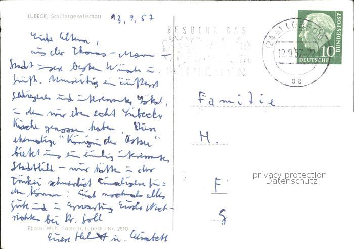 72061324 alte Postkarte LueBECK CITY Schiffergesellschaft postalisch gelaufen Erhaltung siehe scans KatCode: 11110001003000