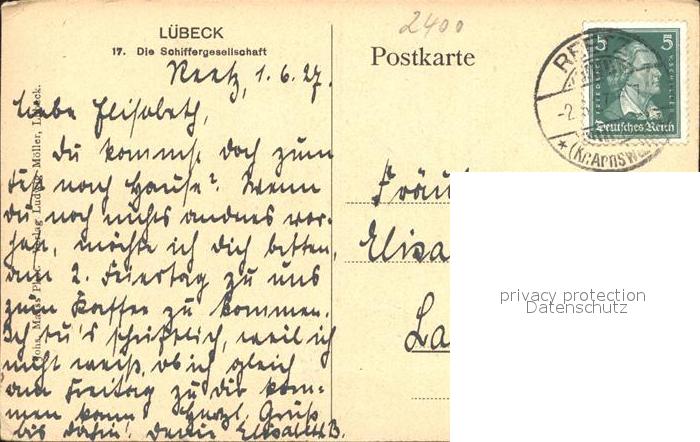 72291777 alte Postkarte LueBECK CITY Schiffergesellschaft Gebaeude Giebel postalisch gelaufen Erhaltung siehe scans KatCode: 11110001003000