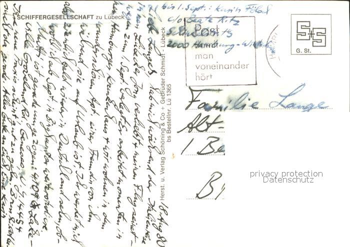 71925472 alte Postkarte LueBECK CITY Schiffergesellschaft Restaurant postalisch gelaufen Erhaltung siehe scans KatCode: 11110001003000