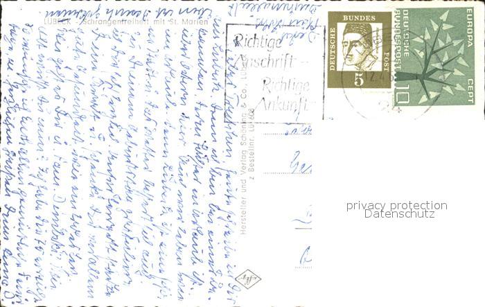 72348896 alte Postkarte LueBECK CITY Schrangenfreiheit mit St Marien postalisch gelaufen Erhaltung siehe scans KatCode: 11110001003000