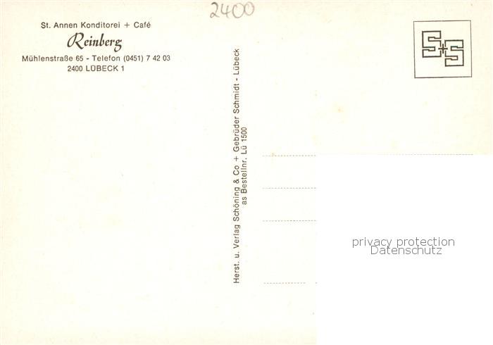73864494 LueBECK CITY St Annen Cafe Konditorei Reinberg Gastraeume Holstentor postalisch nicht gelaufen Erhaltung siehe scans [WerneD78] Wern Katcode 11110001003000