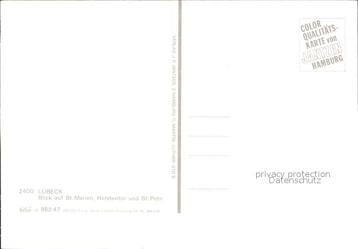 72283602 LueBECK CITY St Marien Holstentor St Petri Kirche Hansestadt Fliegeraufnahme postalisch nicht gelaufen Erhaltung siehe scans KatCode: 11110001003000
