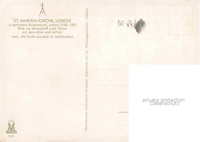 72848958 LueBECK CITY St Marien Kirche Gotischer Backsteinstil 13. Jhdt. Innenansicht postalisch nicht gelaufen Erhaltung siehe scans [FriedD77] KatCode: 11110001003000