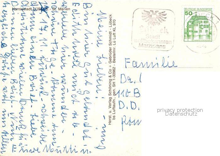 72823347 alte Postkarte LueBECK CITY St Marien Kirche Hansestadt Fliegeraufnahme postalisch gelaufen Erhaltung siehe scans [FriedD77] KatCode: 11110001003000