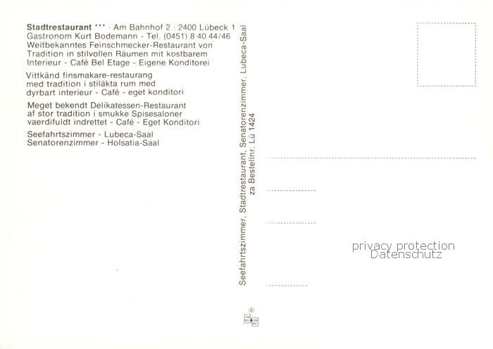73859276 LueBECK CITY Stadtrestaurant Gastraeume postalisch nicht gelaufen Erhaltung siehe scans [WerneD78] Wern Katcode 11110001003000