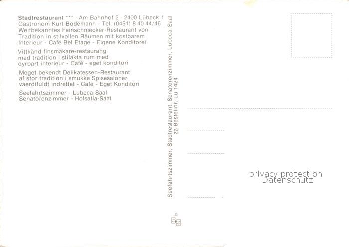72533587 LueBECK CITY Stadtrestaurant postalisch nicht gelaufen Erhaltung siehe scans [FriedD77 kt118box] KatCode: 11110001003000