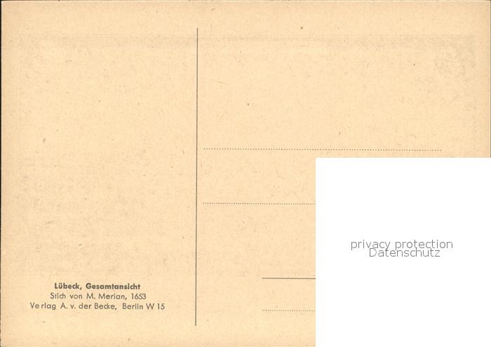 72373222 LueBECK CITY Stich von M. Merian postalisch nicht gelaufen Erhaltung siehe scans KatCode: 11110001003000