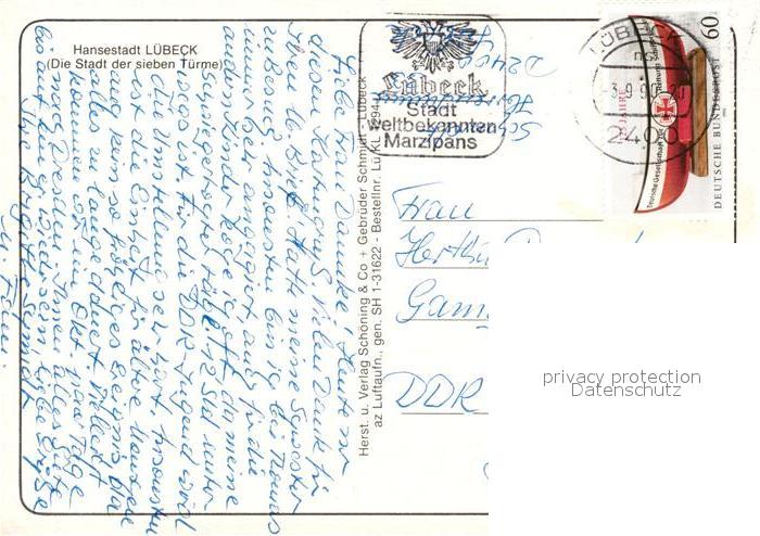 73271656 alte Postkarte Luebeck Fliegeraufnahme postalisch gelaufen Erhaltung siehe scans [KathaD81] KatCode: 11110001003000