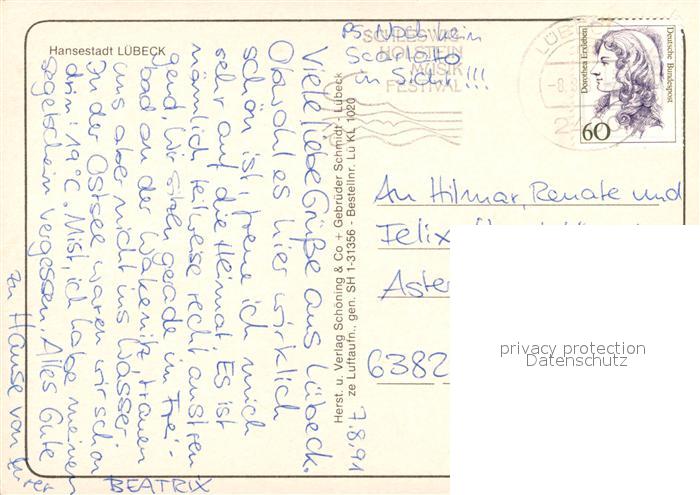 73146188 alte Postkarte Luebeck Fliegeraufnahme postalisch gelaufen Erhaltung siehe scans [NatalD47] KatCode: 11110001003000