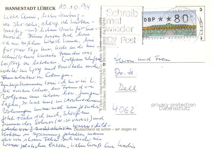 73129696 alte Postkarte Luebeck Fliegeraufnahme postalisch gelaufen Erhaltung siehe scans [NatalD47] KatCode: 11110001003000