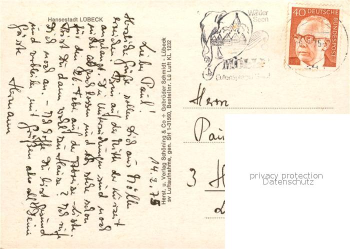 73101109 alte Postkarte Luebeck Fliegeraufnahme postalisch gelaufen Erhaltung siehe scans [WerneD78] KatCode: 11110001003000