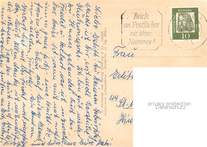 73088987 alte Postkarte Luebeck Fliegeraufnahme postalisch gelaufen Erhaltung siehe scans [PaolaD17] KatCode: 11110001003000