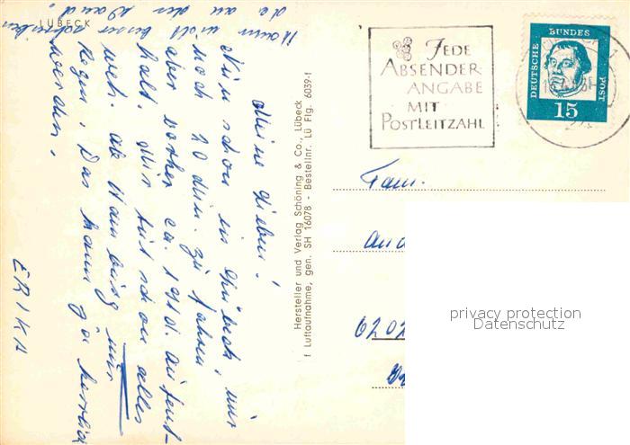 72862203 alte Postkarte Luebeck Fliegeraufnahme Hafen postalisch gelaufen Erhaltung siehe scans [LiesaD40] KatCode: 11110001003000