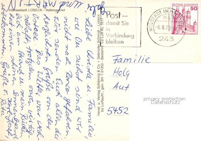 72940784 alte Postkarte Luebeck Fliegeraufnahme Hafengebiet postalisch gelaufen Erhaltung siehe scans [KathaD81] KatCode: 11110001003000