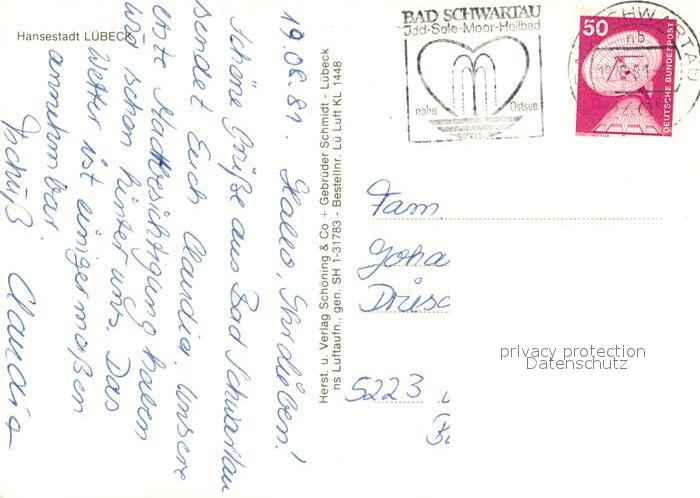 72987584 alte Postkarte Luebeck Fliegeraufnahme Kirchenpartie postalisch gelaufen Erhaltung siehe scans [LiesaD40] KatCode: 11110001003000