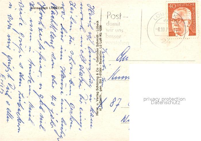 73106626 alte Postkarte Luebeck Fliegeraufnahme Panorama postalisch gelaufen Erhaltung siehe scans [KathaD81] KatCode: 11110001003000