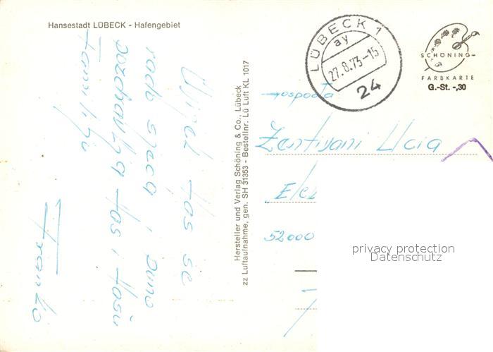 73043547 alte Postkarte Luebeck Hafengebiet Hansestadt Fliegeraufnahme postalisch gelaufen Erhaltung siehe scans [FriedD77] KatCode: 11110001003000