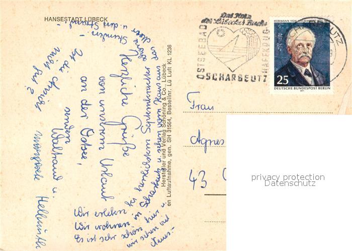 73209347 alte Postkarte Luebeck Hansestadt Fliegeraufnahme postalisch gelaufen Erhaltung siehe scans [FriedD77] KatCode: 11110001003000