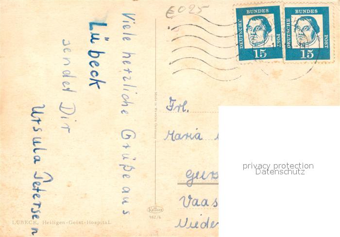 73313718 alte Postkarte Luebeck Heiligen Geist-Hospital postalisch gelaufen Erhaltung siehe scans [LiesaD40] KatCode: 11110001003000