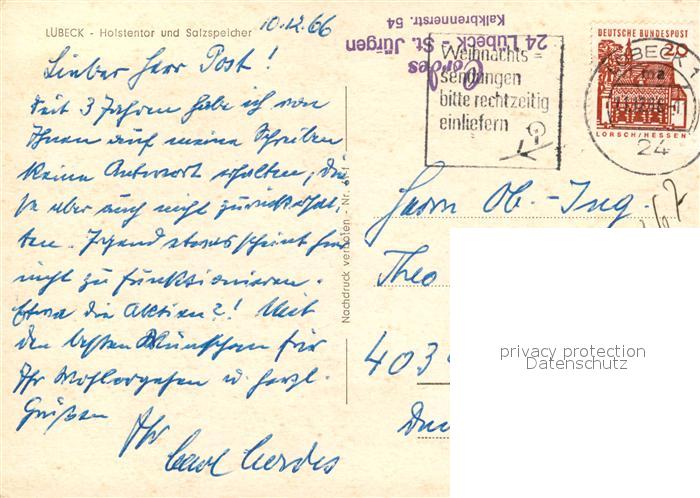 73094942 alte Postkarte Luebeck Holstentor Salzspeicher postalisch gelaufen Erhaltung siehe scans [KathaD81] KatCode: 11110001003000