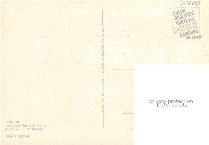 72902001 Luebeck Malerwinkel mit St Petri und St Marien postalisch nicht gelaufen Erhaltung siehe scans [WerneD78] KatCode: 11110001003000