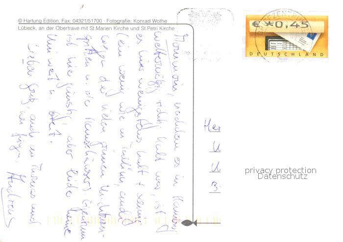 72906806 alte Postkarte Luebeck Obertrave St. Marien Kirche St. Petri Kirche postalisch gelaufen Erhaltung siehe scans [NatalD47] KatCode: 11110001003000