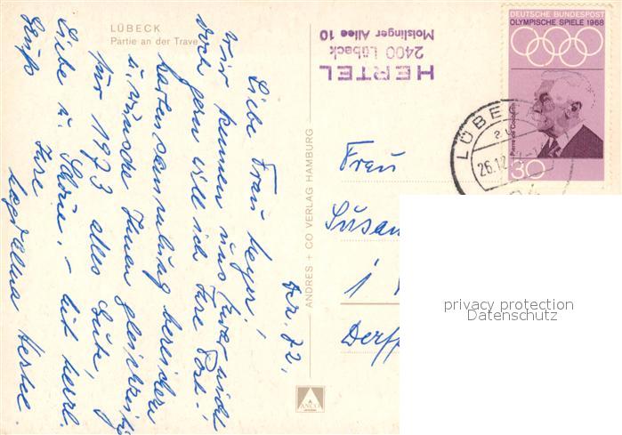 73125427 alte Postkarte Luebeck Partie an der Trave postalisch gelaufen Erhaltung siehe scans [FriedD77] KatCode: 11110001003000