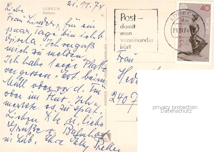 73207928 alte Postkarte Luebeck Rathaus postalisch gelaufen Erhaltung siehe scans [KathaD81] KatCode: 11110001003000