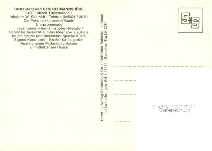 73045947 Luebeck Restaurant Cafe Hermannshoehe Uferpromenade postalisch nicht gelaufen Erhaltung siehe scans [WerneD78] KatCode: 11110001003000