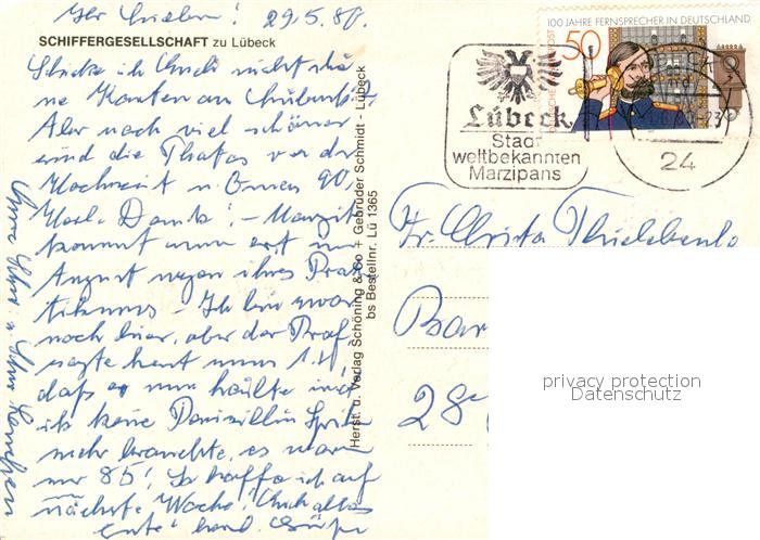 73311931 alte Postkarte Luebeck Schiffergesellschaft postalisch gelaufen Erhaltung siehe scans [KathaD81] KatCode: 11110001003000