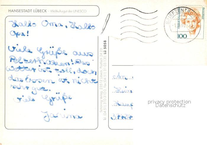 73072870 alte Postkarte Luebeck St. Marien Breite Strasse Burgtor Holstentor postalisch gelaufen Erhaltung siehe scans [NatalD47] KatCode: 11110001003000