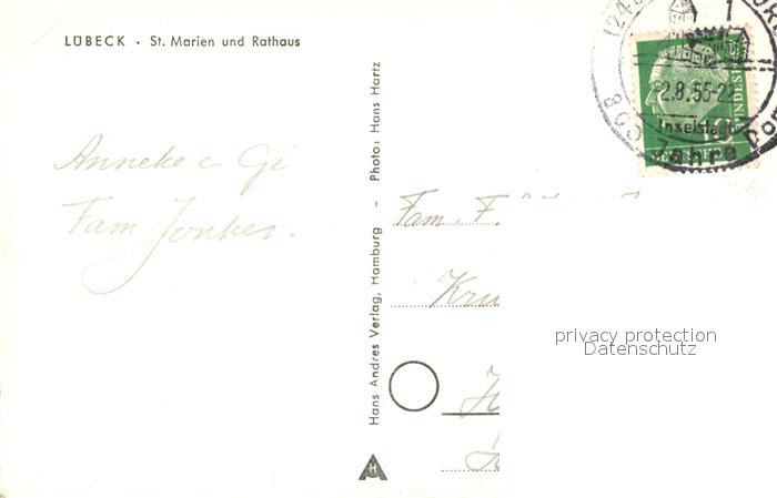 73331171 alte Postkarte Luebeck St Marien und Rathaus postalisch gelaufen Erhaltung siehe scans [WerneD78] KatCode: 11110001003000