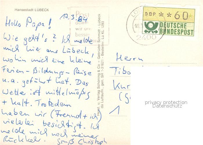 73169529 alte Postkarte Luebeck Stadtbild mit Kirchen und Holstentor Fliegeraufnahme postalisch gelaufen Erhaltung siehe scans [FriedD77] KatCode: 11110001003000