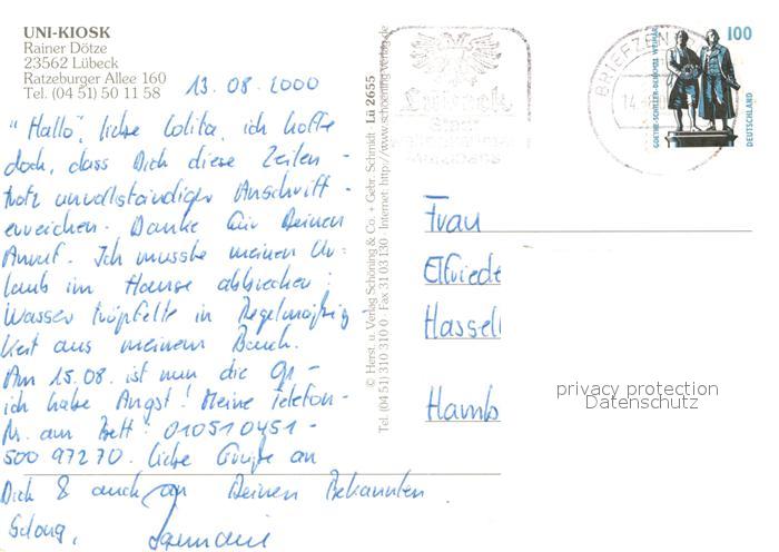 72962815 alte Postkarte Luebeck Universitaet Aussichtsturm postalisch gelaufen Erhaltung siehe scans [WerneD78] KatCode: 11110001003000
