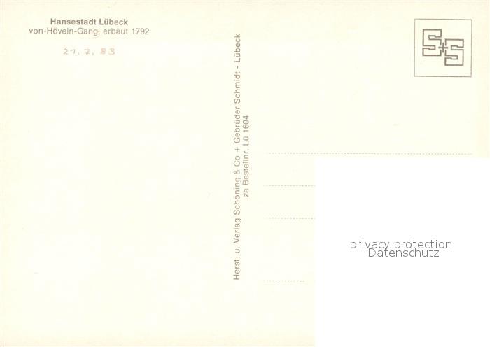 73243463 Luebeck von Hoven Gang postalisch nicht gelaufen Erhaltung siehe scans [KathaD81] KatCode: 11110001003000