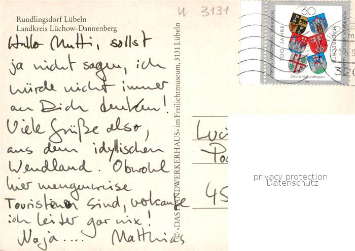 72962714 alte Postkarte Luebeln Fliegeraufnahme postalisch gelaufen Erhaltung siehe scans [NatalD47] KatCode: 11110003354013