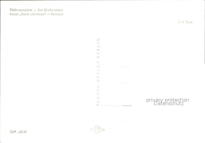 72552531 Luebtheen Thaelmannplatz Kirchenplatz Hotel Stadt Luebtheen Postamt postalisch nicht gelaufen Erhaltung siehe scans [WerneD78] KatCode: 11110013054067