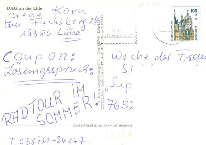 73947389 alte Postkarte Luebz Brunnen Turm Eldepartie Teilansichten postalisch gelaufen Erhaltung siehe scans [WerneD78] KatCode: 11110013060049