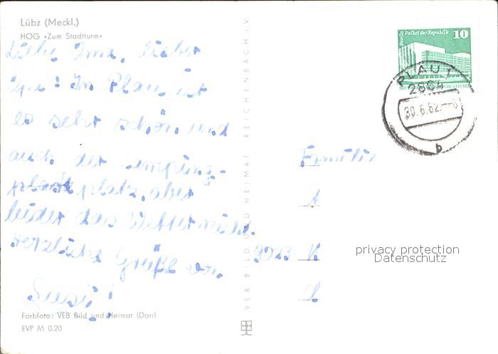 72112811 alte Postkarte Luebz HOG Zum Stadtturm postalisch gelaufen Erhaltung siehe scans KatCode: 11110013060049