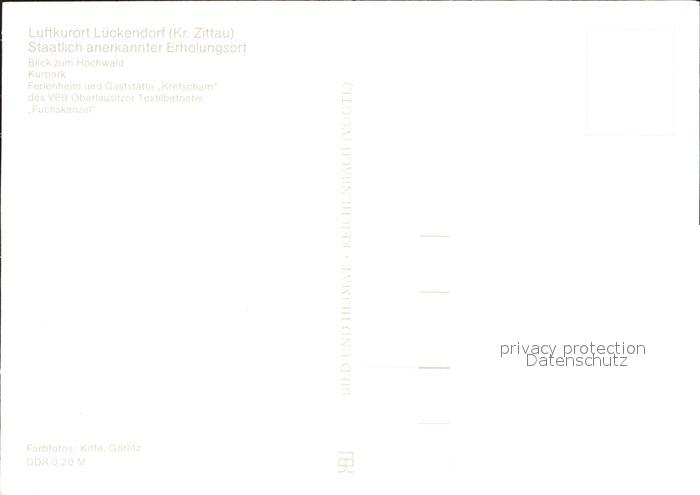 72322723 Lueckendorf Hochwald Kurpark Gaststaette Kretscham VEB Fuchskanzel postalisch nicht gelaufen Erhaltung siehe scans KatCode: 11110014286360