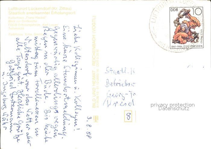 72372578 alte Postkarte Lueckendorf Kulturhaus Franz Hackel Dorfkirche postalisch gelaufen Erhaltung siehe scans KatCode: 11110014286360
