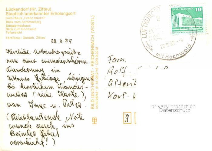 72617164 alte Postkarte Lueckendorf Kulturhaus Franz Hackel Sommerbergblick Umgebindehaus Hochwald Teilansicht postalisch gelaufen Erhaltung siehe scans [WerneD78] KatCode: 11110014286360