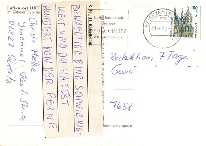 73947396 alte Postkarte Lueckendorf Oybin Sachsen Teilansichten Schlucht Kirche Fachwerkhaus Park postalisch gelaufen Erhaltung siehe scans [WerneD78] KatCode: 11110014286360