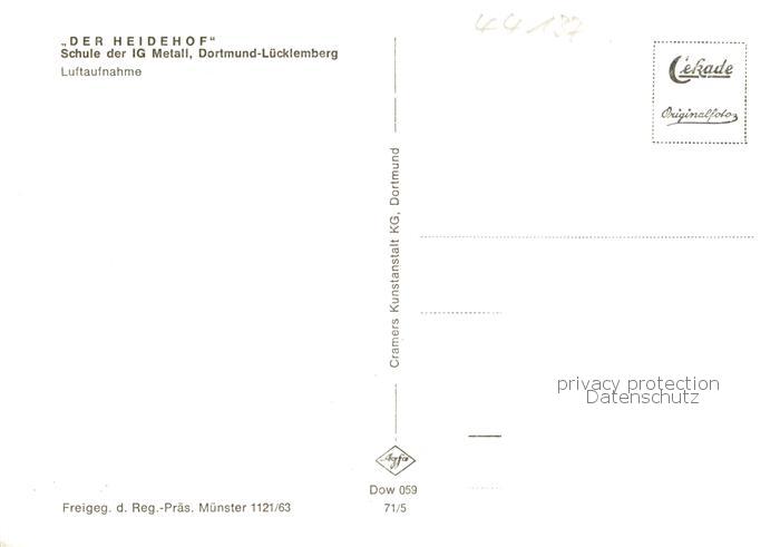 73852961 Luecklemberg Dortmund Der Heidehof Schule der IG Metall Fliegeraufnahme postalisch nicht gelaufen Erhaltung siehe scans [WerneD78] Wern Katcode 11110005913000