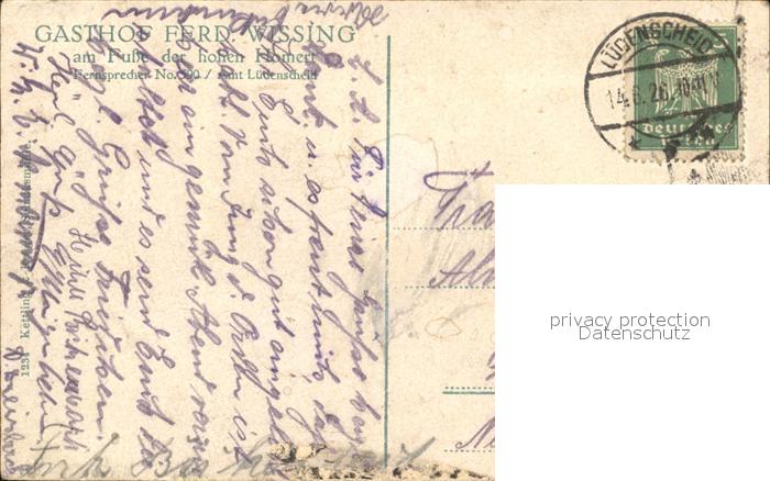 31728119 alte Postkarte Luedenscheid Aussichtsturm Gasthof Ferd. Wissing postalisch gelaufen Erhaltung siehe scans KatCode: 11110005962032