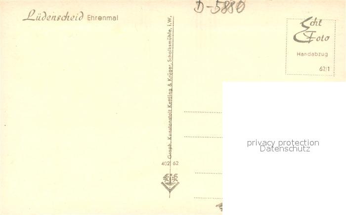 73700221 Luedenscheid Ehrenmal postalisch nicht gelaufen Erhaltung siehe scans [LiesaD40] KatCode: 11110005962032