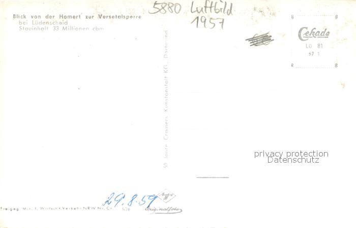73700217 Luedenscheid Fliegeraufnahme Versetalsperre postalisch nicht gelaufen Erhaltung siehe scans [LiesaD40] KatCode: 11110005962032