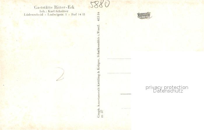 73709994 Luedenscheid Gaststaette Ritter-Eck Innen postalisch nicht gelaufen Erhaltung siehe scans [LiesaD40] KatCode: 11110005962032