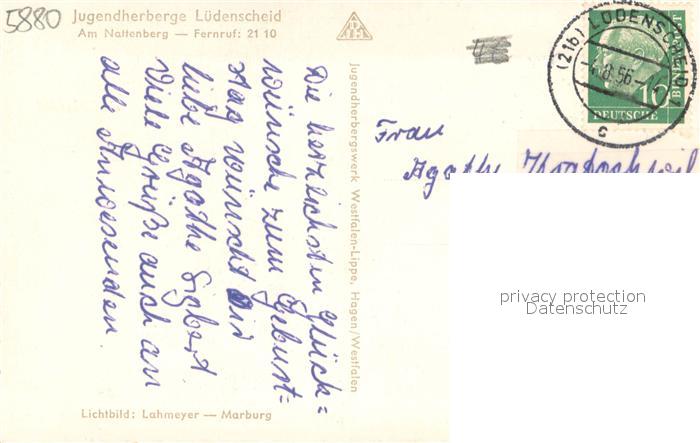 73709998 alte Postkarte Luedenscheid Juegendherberge Aussenansicht postalisch gelaufen Erhaltung siehe scans [LiesaD40] KatCode: 11110005962032